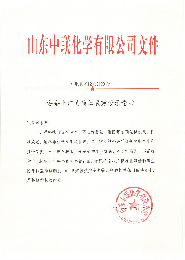 安全生產(chǎn)誠信體系建設(shè)承諾書 2015-2-20